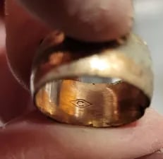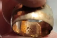 Flattened silver thimble. Recovered by Randy Cobb