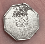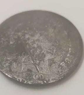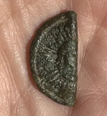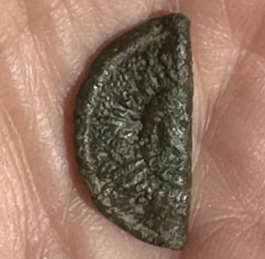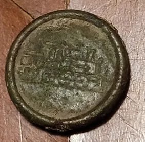 Etching on the front and number stamped on the back, possibly a miner or slave token. Recovered by Brian Bottoms.