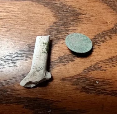 Early 1800's Pipe stem, flat button. Recovered by Keith Morgan