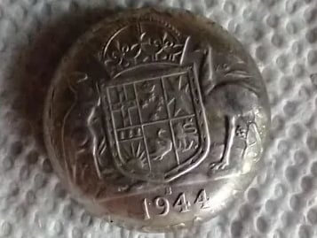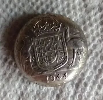 1944 Australian Siver coin used for cane top recovered by Rusty Hicks . Eastern NC Dog Park