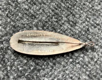 Johnson’s Silver Minnow lure made of copper. Patent date stamped on it is 08/22/1928. Recovered by Keith Harris, Eastern Nc.